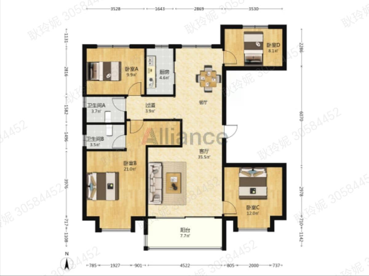 出售宾悦龙城2号楼304 140平方三室两厅两卫,南侧611-22 397浏览房屋出售